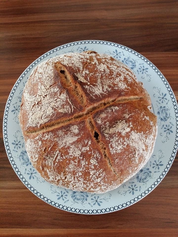 15 dakika kadar daha ekmeğimizi pişiriyoruz. Pişen ekmeğimizi döküm tencereden dikkatlice çıkarttıktan sonra soğuması için bırakıyoruz. İçi sıcak olan ekmek kendi kendine pişirmeye devam edecektir. Yaklaşık bir saat sonra soğuyan ekmeğimiz yenilmeye hazırdır.